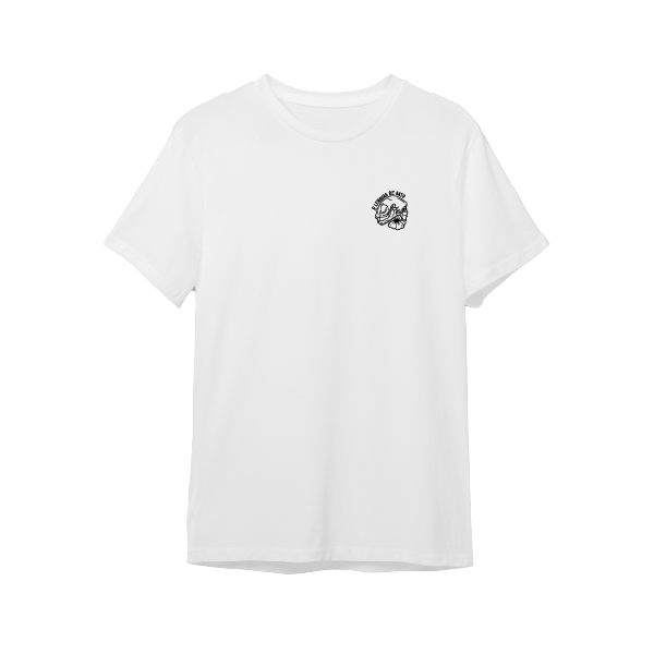 Camiseta blanca confeccionada en algodón 100% con un clásico cuello redondo en RIP, corte unisex relajado y un diseño único estampado en serigrafia inspirado en Gatos.