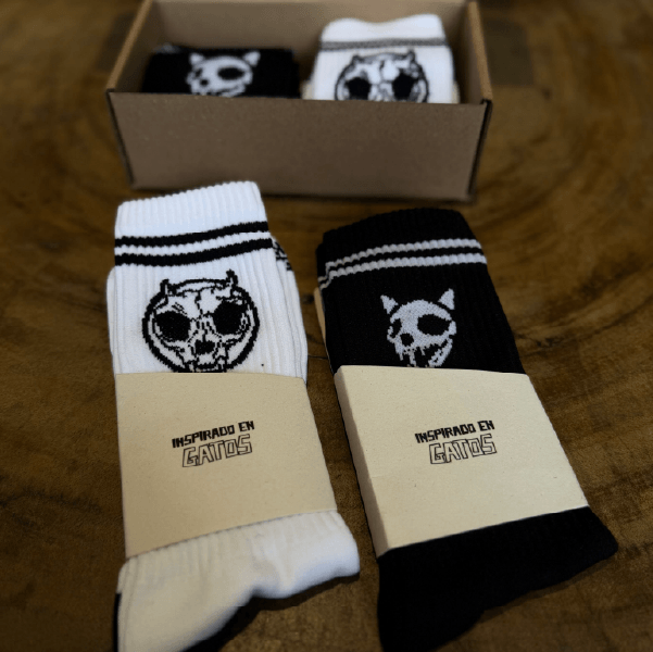 Hechas para el desgaste, no para la decoración. Estas medias tipo skateboard están diseñadas para aguantar pelos de Michi, calle, y lo que venga. Su tejido premium no solo es cómodo, también es fuerte. La caña de 17 cm y el acabado acanalado mantienen la sujeción donde tiene que estar: firme y sin distracciones.
